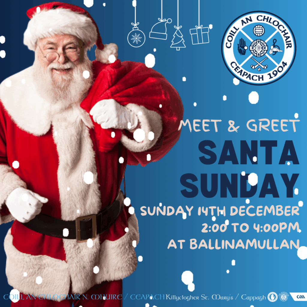 SANTA SUNDAY – Our members are all invited to come along and meet Santa on Sunday 14th December, between 2:00 and 4:00pm at the clubrooms at Ballinamullan. See you there