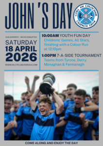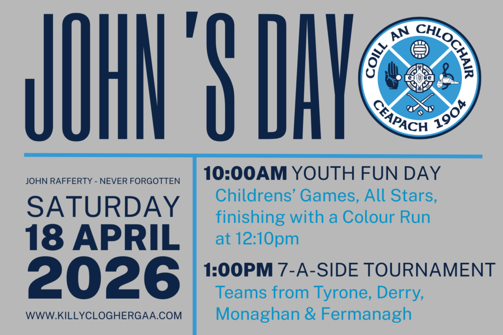 In remembrance of John Rafferty who remains firmly in our thoughts, this yearβs Johnβs Day will take place on Saturday week, 18th April.